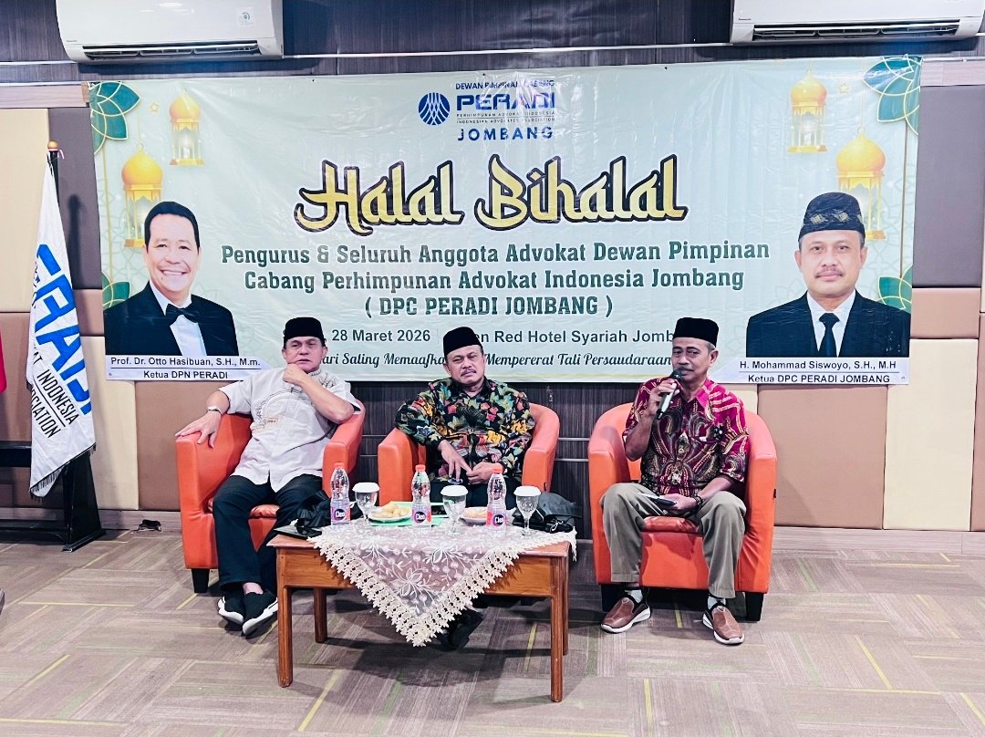 Nuranikeadilan.web.id – Dalam suasana Idul fitri 1447H, Dewan Pimpinan Cabang Perhimpunan Advokat Indonesia (DPC PERADI) Jombang menggelar acara silaturahmi dan Halal bihalal bertempat di Hotel Green Red Jombang. Sabtu (28/3/2026)